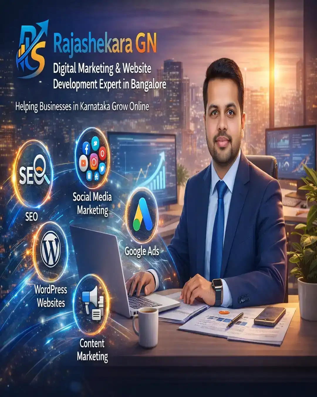 I’m Rajashekara G.N. (Gyadivandlapalli Narayanaswamy), a dedicated Digital Marketing & Website Development expert in Bangalore, helping businesses all over Karnataka, Bagepalli (Bhagyanagara), Chelur, and across India grow and succeed online. With a results-focused approach, I specialize in building strong digital strategies that improve brand visibility, generate quality leads, and increase conversions. My expertise includes SEO, Social Media Marketing, Google Ads, WordPress website solutions, Content Marketing, and Online Branding, delivering measurable results tailored to each client’s business and audience.