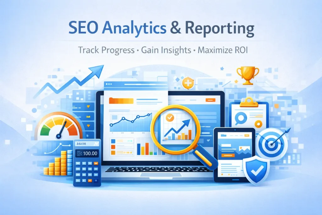 SEO Analytics & Reporting helps you understand how your website is performing and where improvements are needed. Our SEO Analytics & Reporting services provide clear, data-driven insights into your website’s traffic, rankings, and overall SEO performance.We track, analyze, and report key metrics to help you make informed decisions and continuously improve your online visibility.