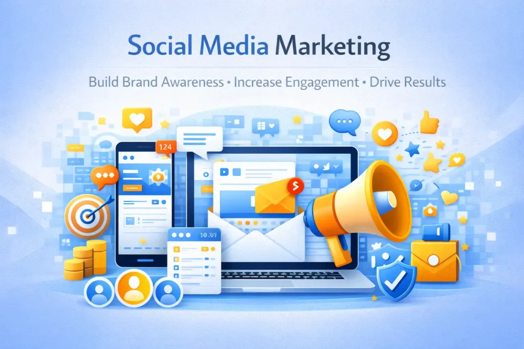 Social Media Marketing helps your brand connect, engage, and grow with your target audience across popular social platforms. Our Social Media Marketing services focus on building brand awareness, increasing engagement, and driving quality leads through strategic and creative content.We create and manage social media campaigns that align with your business goals and deliver measurable results.