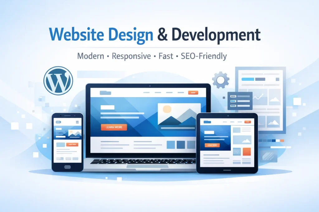 A strong online presence starts with a well-designed and professionally developed website. Our Website Design & Development services focus on creating modern, responsive, and high-performing websites that reflect your brand identity and help you achieve your business goals.We design websites that are visually appealing, user-friendly, and optimized for speed, SEO, and conversions. Whether you need a simple business website or a fully functional dynamic platform, we deliver solutions tailored to your requirements.
